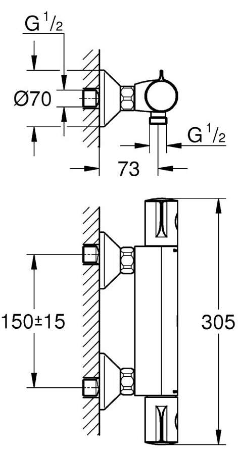 34569000 | Mitigeur thermostatique Bain / Douche 1/2 Grohtherm 800 Chromé |