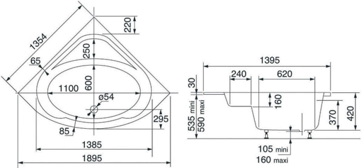 E60223-00 | Baignoire d'angle à encastrer |