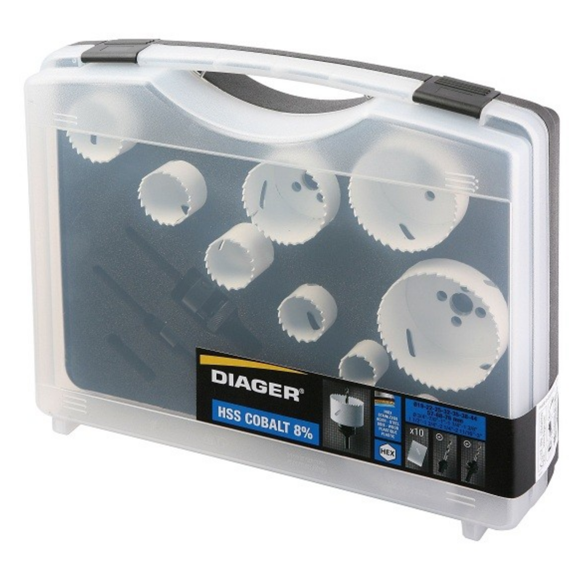 651C | Mallette scie cloche jaune 9pc bimétal 22-29-35-44-51-68 - 2 pilotes hex - foret |